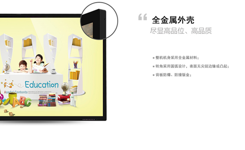 4、其外觀以拉絲烤漆顯得更加華麗,重量不超過60kg,機(jī)身超薄僅84mm,且待機(jī)功耗僅0.5W,是一款既時(shí)尚又低碳環(huán)保的電子白板。